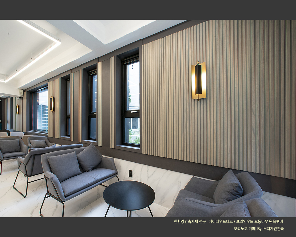 KD 프라임우드는 100% 천연 오동나무로 만든 오버코트 완제품으로 별도의 도장 마감이 불필요합니다. 워싱 기법을 도입, 목재의 은은한 나이테를 살려서 천연의 나무 질감을 최대한 표현한 점입니다. 천연 나무가 주는 고전적 포근함 질감이나 그레이 컬러의 미니멀한 느낌은 어떤 인테리어 디자인 요소에도 잘 어울립니다. 일반 목재의 1/3에 불과한 오동나무 재질의 루버는 가벼워서 취급이 편하고 시공이 아주 편합니다. 뒤틀림 등 변형과 사계절 치수변화가 작아서 좋습니다. 벽 뿐만이 아니라 천장의 장식에도 아주 효과적입니다. 습도에 강해서 직사광선이 없는 외부 처마 밑에 시공하여도 무방합니다