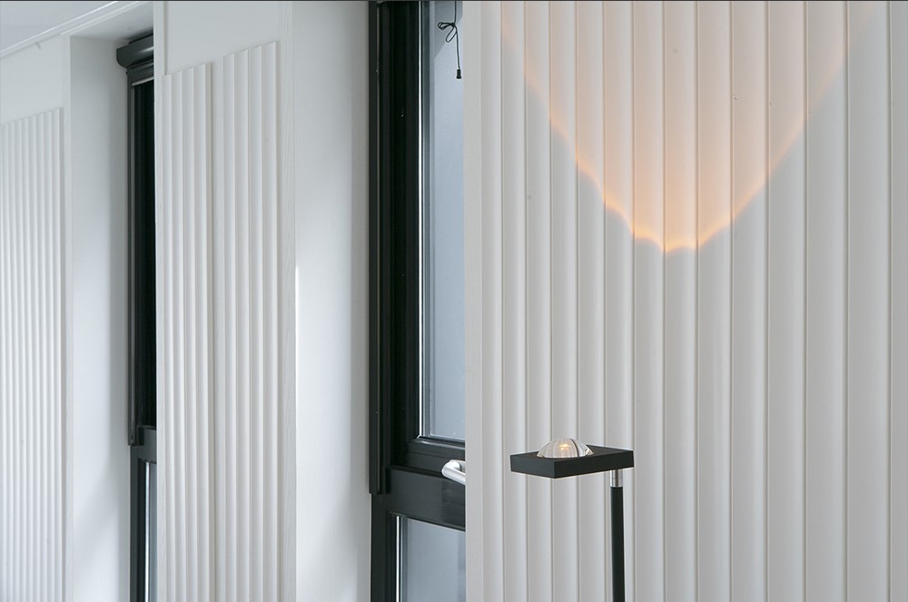 KD프라임우드 펄스루버 시리즈는 독자적으로 벽이나 천장 등에 사용이 가능하지만 마운틴루버, 트래디션 루버와 플릇루버등 콤비네이션으로 사용하여 펄스루버 시스템을 만들수 있습니다. 펄스루버 시스템은 벽이나 천장에 적용되며, 맥박의 신호를 부호화한 형상으로 시공되어 벽이나 천장에 완전히 새로운 디자인을 제공하게 됩니다. 본 제품은 돌코팅 기법을 도입하여 목재가 불에 잘 타지 않도록 하였으며, 국내 방염 기준에 적합합니다