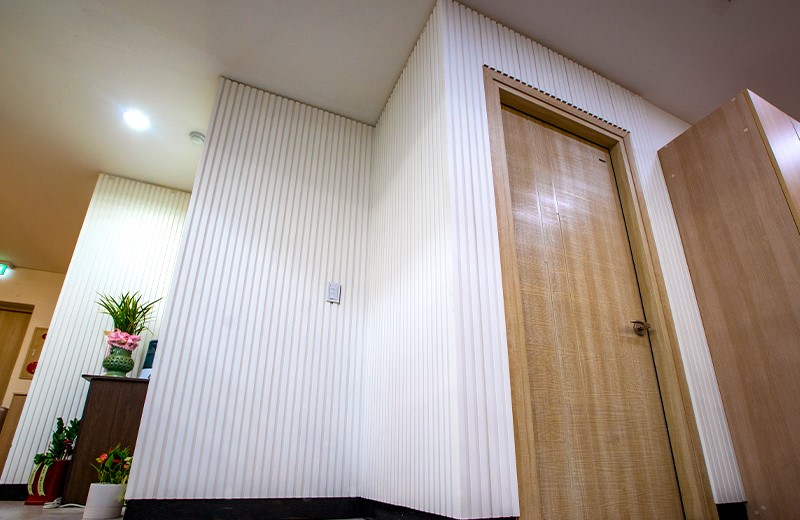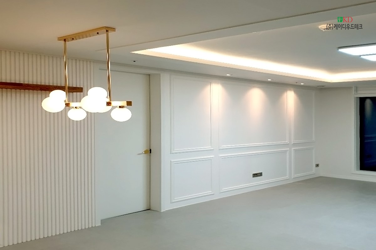 뒤틀림 등 변형과 사계절 치수변화가 작고 수축팽창이 거의 없어서 좋습니다. 벽 뿐만이 아니라 천장의 장식에도 아주 효과적입니다.