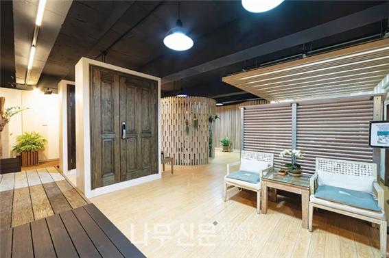 그는 또 “특히 음향 특성을 가진 사운드메이트의 다양한 제품군을 적극 디자인해 TV거실 존, 천장 존, 웨이브 벽마감 존 등을 설치했다”면서 “건물 외부에 노출되는 건축자재로는 조경에 필요한 원형 목재 원두막 우드세움을 중심으로 외벽과 테라스를 위한 탄화목, 규화목, 데크 존 그리고 현관문과 목재 관리재를 비치해두고 제품의 특징을 살펴보고 선택이 용이하도록 했다”고 덧붙였다.