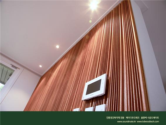 거실의 TV 시청의 필수 아이테으로 부각되고 있는, 소리를 배려하는 쾌적한 공간의 연출을 위해 출시된 케이디우드테크의 사운드메이트가 지속적으로 신제품을 선보였습니다. 음악감상실 위한 흡읍 효과와 디퓨징 효과로 오디오 매니아들의 가슴을 설레게 했던 사운드메이트는 이제 TV나 음향기기가 설치되는 거실에서 꼭 있어야 하는 필수품으로 인식되고 있습니다. 목재음향벽인 사운드메이트는 음향효과 뿐만 아니라 숲에서 온 원목을 그대로 사용하여 실내공기를 정화하며, 아름다운 아트월로서의 멋진 효과도 빼놓을 수 없는 장점으로 더욱 부각이 된다. 현재 케이디우드테크에서 출시된 ‘사운드메이트’의 재품 라인은 규모와 용도에 따라 선택하실수 있도록 4가지로 구성되어 있습니다.