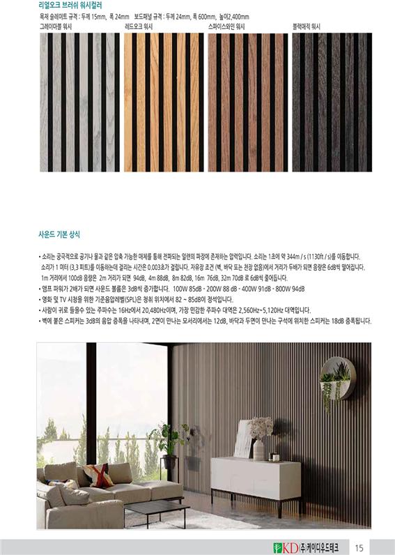 다양한 수종의 원목과 흡음팰트, 시공하기 간편한 설치부자재를 포함하는 시스템으로 개발 완료하고특허 출원 중입니다.