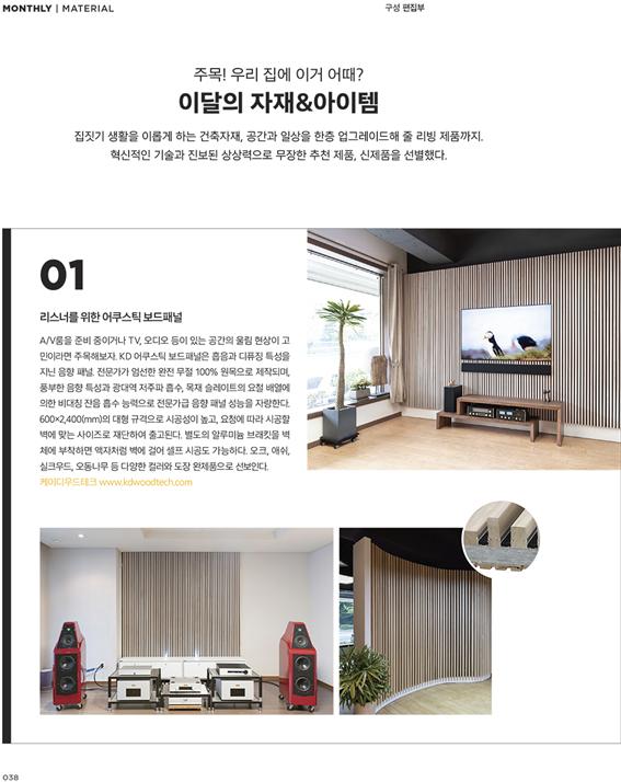언론보도&광고 [언론보도] [전원속의내집 2021.7월] 이달의 자재 & 아이템, 케이디우드테크 어쿠스틱 패널보드 소개 2021.7