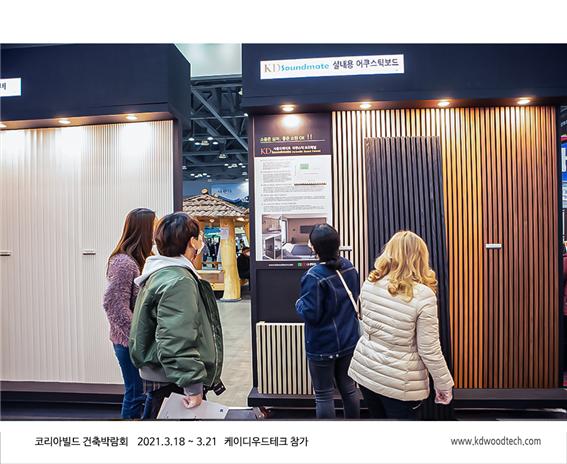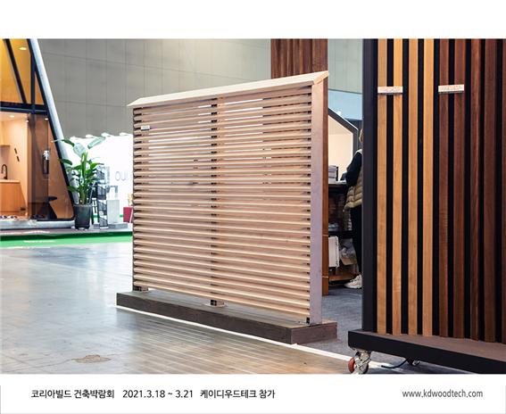 친환경건축자재 목재건축자재 전문기업 "케이디우드테크" 는 금번 전시에서 추가로 사운드메이트 SOUNDMATE 를 출시하고 방음과 흡음벽에 대한 솔루션을 다양하게 전시 상담하였습니다.특히 음향벽 사운드메이트에 대한 관심이 폭증하였습니다