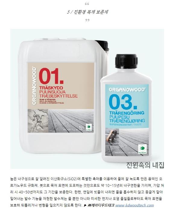 언론보도&광고 [언론보도] [ 전원속의내집 ] 이달의 신상 건축자재 20201203, 친환경 목재보존재 '오르가노우드 규화제' 2020.12