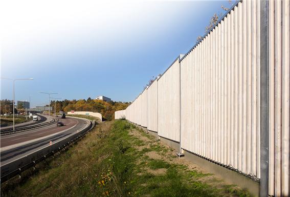 고속도로 방음벽에 사용된 규화처리된 레드파인우드(오르가노우드)는 100% 친환경이며 최소 40년의 수명을 보장한다. 사진은 북유럽의 E18 고속도로로 북아일랜드 Craigavon에서 러시아 Saint Petersburg 까지 연결되며 총연장은 1,890 km이다.
