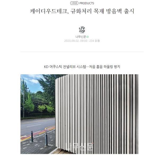 언론보도&광고 [언론보도] [ 나무신문 ] 케이디우드테크 규화처리 목재방음벽 출시 20200902 2020.9