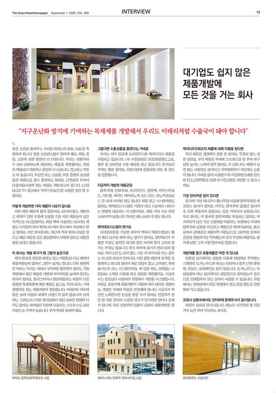 언론보도&광고 [언론보도] [목재신문 659호 2020 0901] INTERVIEW 케이디우드테크 홍탁 대표 2020.9