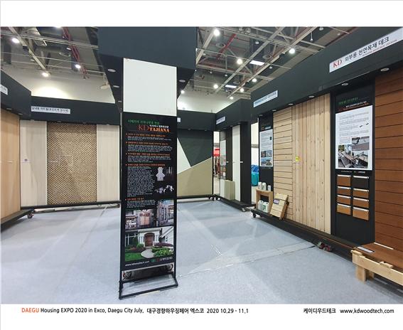 친환경 건축자재 전 기업인 케이디우드테크의 지사인 케이디메이트는 지난달 대구 엑스코에서친환경 건축을 위한 건축 내외장 마감재를 출품하는 대구경향하우징 코리아빌드 건축박람회를 무사히 마쳤습니다.위중한 코로나 팬더믹 상황에서도 저희 케이디우드테크부스를 찾아주신 여러분께 감사드리며향상된 모습으로 다음에 또 뵙겠습니다.건겅한 건축, 아름다운 건축을 위하여 케이디우드테크 제품의 많은 애용바랍니다.