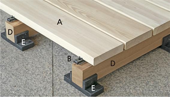 3. 대기중 습도 변화에 따른 목재 데크의 수축, 팽창을 자유롭게 허용하여 목재의 갈라짐을 방지하고 데크의 수명을 연장합니다.