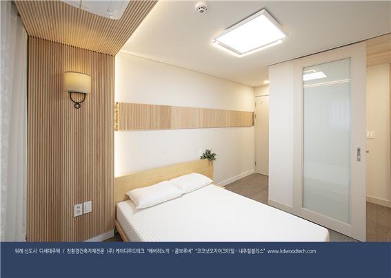 위례신도시 다가구주택에 사용된 케이디우드테크 프라임우드(오동나무 루버)는 가볍고 단열효과가 좋은 오동나무 원목 100%를 원재료로 하여 디자인 작업을 통해 감각적이며 친환경적인 제품으로 탄생됐다.다양한 색상과 디자인으로 출시돼 있어 현장 요구에 맞게 작업이 가능하고 새집증후군이나 알러지의 주범으로 꼽히는 실크벽지를 대체할 수 있으며, 가벼운 원목루버로 일반인도 쉽게 완성할 수 있다. 일반 원목의 1.5배 이상 보온 단열효과를 가지고 있음에도 높은 가성비를 유지해 케이디우드테크의 인기 제품 중 하나로 꼽힌다.이 외에도 에버히노끼(편백나무 무절)는 삼림욕 효과가 높은 피톤치드를 가장 많이 함유한 편백나무 최상품으로 디자인 되었으며, 코코넛타일은 천연 코코넛껍질 100%로 만들어지는 핸드메이드 타일로 멋진 아트월을 만들 수 있다. 케이디우드테크는 서울시 송파구 오금동과 대구에 있는 지사 상설전시장에서 건축 내외장재 전체를 전시하고 있으며, 건축 상담과 견적 작업을 돕고 있다. 보다 자세한 정보는 공식 홈페이지 및 상담 전화를 통해 확인 가능하다.