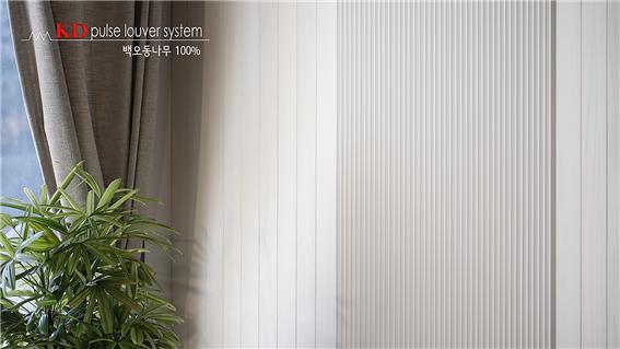 KD프라임우드 마운틴루버는 오버코트된 화이트 색상 한가지만 출시되어 있습니다. 본 제품은 독자적으로 벽이나 천장 등에 사용이 가능하지만 트래디션 루버와 콤비네이션으로 사용하여 펄스루버 시스템 을 만들수 있습니다.