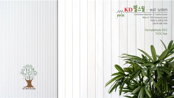 도배보다 간편한 100% 천연 오동나무 원목 루버로서 착한 가격으로 개발 완료, 입고 되었습니다.본 제품과 마운틴 루버를 함께 사용한 < KD 펄스루버 시스템 > 도 함께 출시되었습니다.