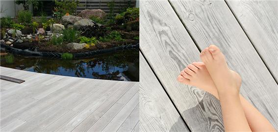 ▶ 아름다운 SILVER GREY(은회색) 목재 컬러규화 처리된 목재는 보통 2개월이 지나면 햇빛이나 수분에 의해 아름다운 은회색으로 변합니다.소나무의 경우 처음 한달간 핑크색으로 변했다가 시간이 지남에 따라 점점 흰색(White)으로 변하고 2개월이 경과하면 은회색으로 변합니다.규화처리된 목재는 옹이 부분이든 변재. 심재든 구분하지 않고, 심지어는 그늘진 곳이나 직사광선이 내려 쬐는 곳이든지 균일하게 색상이 변합니다.침엽수, 활엽수, 열대목재, 온대목재, 시베리아 목재든 구분하지 않고 균일하게 은회색으로 변합니다.