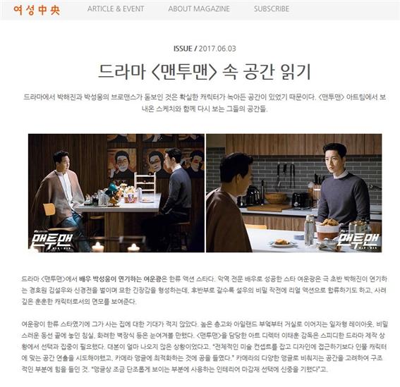 언론보도&광고 [언론보도] 여성중앙에 개재된 드리마속 공간 2017.6