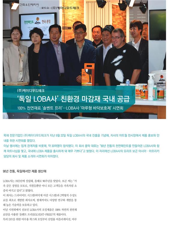 언론보도&광고 [언론보도] 독일 'LOBA'사 친환경페인트 마감재 독점공급 - 뷰티플사인 10월호 2012.10