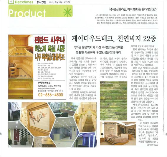 언론보도&광고 [언론보도] 천연벽지 22종 녹차잎 벽지가 가장 주목받는 아이템 장식신문 8월 10일자 2012.8