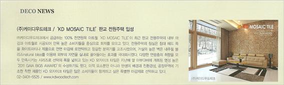 - 다음글[언론보도] 월간 더리빙 [ KD MOSAIC TILE ] 광고 및 신제품 [ 골드우드 ] 기사 2012.3 25.02.28