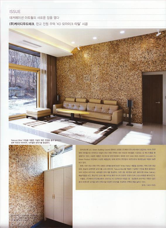 판교 전원주택의 침실에 시공된 화이트파티나 ( White Partina ) 제품이 주인공이 되었네요. 동장군을 물리치고 다가온 새 봄의 산뜻한 기운과 잘 어울릴듯합니다.지난 1월 27일 부터 열렸던 <동아전람> 참가 소식에도(주)케이디우드테크의 KD모자이크 타일 중에서 코코모자이크 타일이 소개되었습니다.