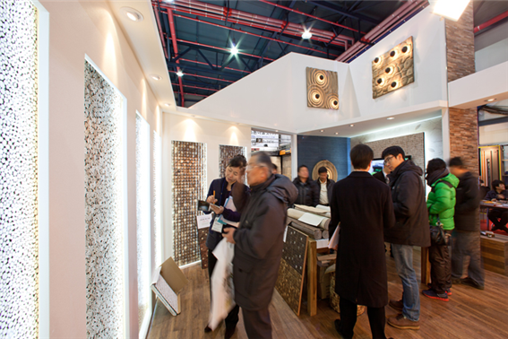 당사는 현재 SETEC ( 서울 강남구 학여울역 ) 에서 열리고 있는 제28회 MBC 동아전람 건축박람회에 참가하여목제 타일 아트월 < KD 모자이크 타일 >을 선보이고 있습니다.